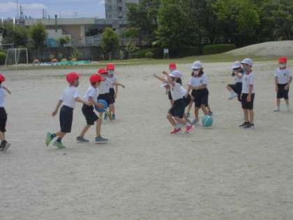 ころがしドッジボールが、白熱(はくねつ)していました。