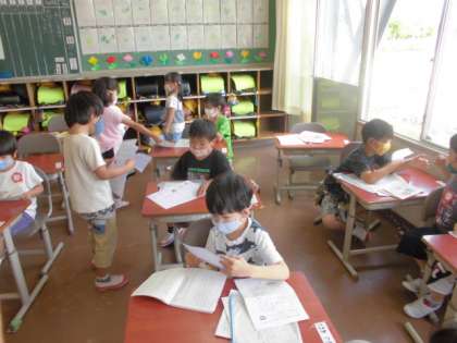字(じ)が読(よ)めるようになってきたので、友達(ともだち)のノート、プリントを配達(はいたつ)する係(かかり)が活躍(かつやく)していました。