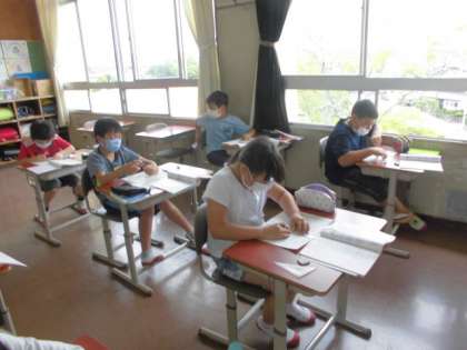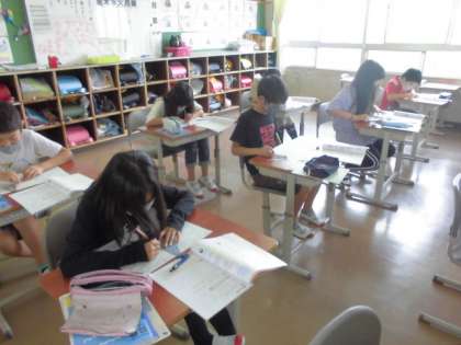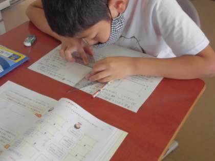三角定規(さんかくじょうぎ)を上手(じょうず)に使(つか)っていました。