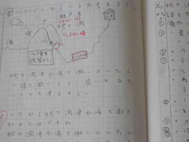 水道(すいどう)の学習(がくしゅう)をしていました。絵図(えず)をつかって、水道の仕組(しく)みをノートに上手(じょうず)にまとめていました。