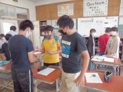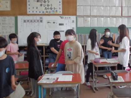 ハッピータイムで「質問(しつもん)じゃんけん」に取り組んでいました。教室中(きょうしつじゅう)、盛(も)り上(あ)がっていました。