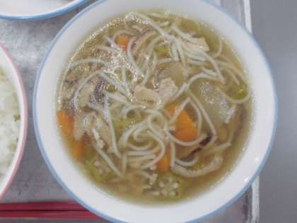 もうひとつ、七夕(たなばた)にあわせて、そうめん汁(じる)もでました。そうめんは天(あま)の川(がわ)を、オクラは星(ほし)をあらわしているそうです。