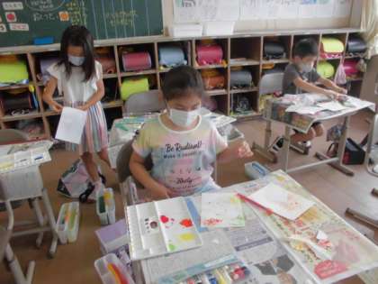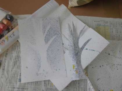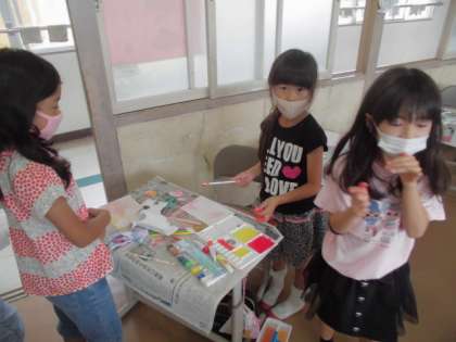 絵(え)の具(ぐ)をつかった素敵(すてき)な作品(さくひん)ができあがっていました。