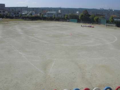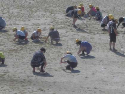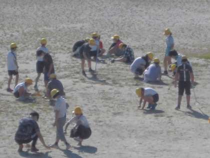 運動会(うんどうかい)でつかうトラックあたりには、草(くさ)がほぼなくなっています。みんなでがんばったおかげです。