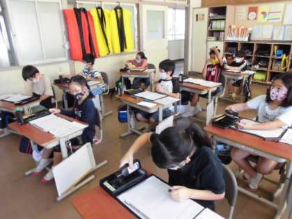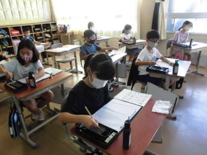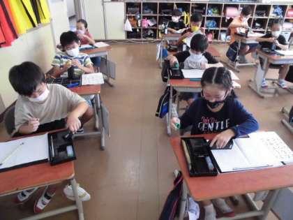 小筆(こふで)の練習(れんしゅう)をしていました。