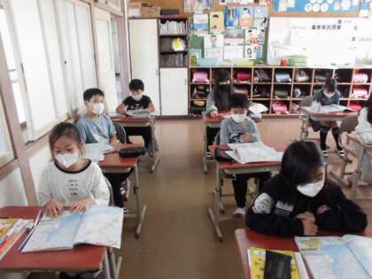 ちょうど、地図帳(ちずちょう)で種子島(たねがしま)の位置(いち)を確認(かくにん)しているところでした。