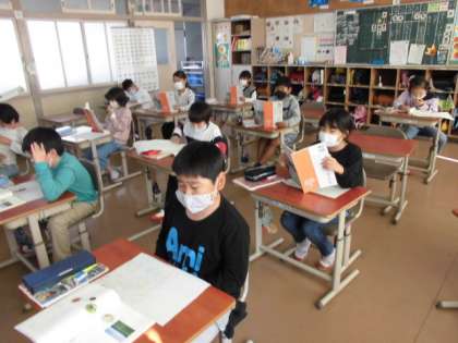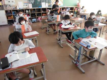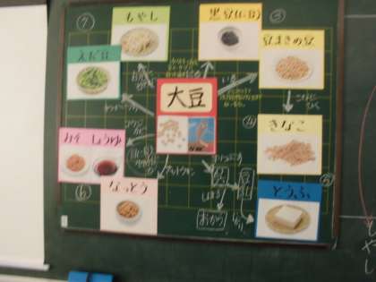 大豆(だいず)についての説明文(せつめいぶん)の学習(がくしゅう)をしています。