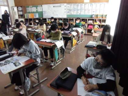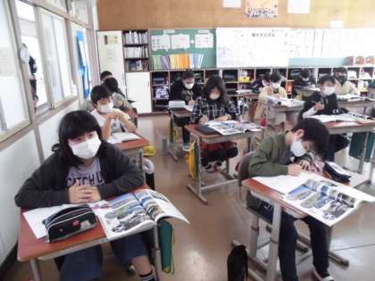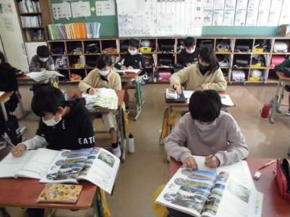 流(なが)れる場所(ばしょ)によって、川原(かわら)の石(いし)の大(おお)きさなどがちがってくることを学習(がくしゅう)していました。