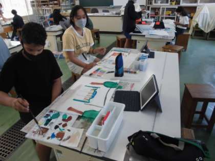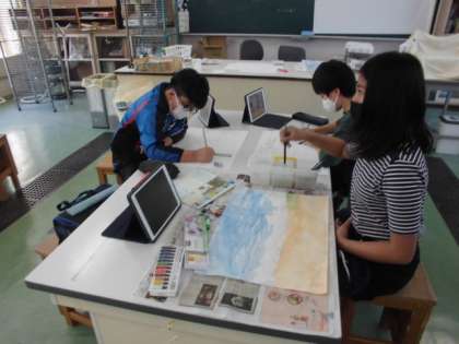 学校の身近な風景を題材にした水彩画に取り組んでいます。