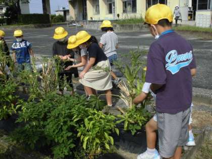 ホウセンカ、ヒマワリ、オクラの種取りをしていました。