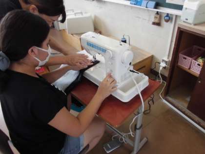トートバッグづくり、ミシン縫いも順調です。