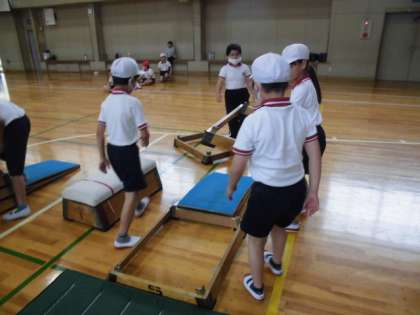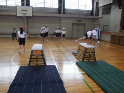 自分たちで協力しながら、安全に気をつけ、跳び箱の段数をかえていました。さすが4年生です。