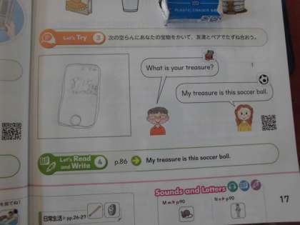 「自分の大切なもの」を答える表現練習をしていました。