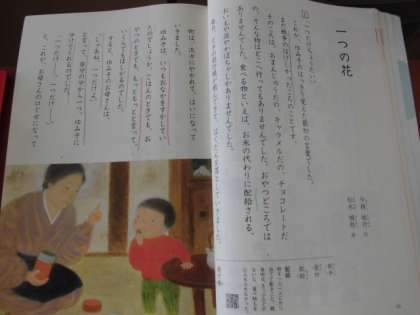 「一つの花」を教材に。登場人物の気持ちの変化を読み取る学習をしていました。