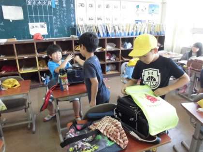 帰りの用意をしています。