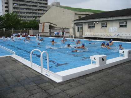 写真は、5時間目のプールの様子です。歓声が上がっています。