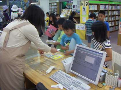 市立図書館にはたくさんの本があり、みんな驚きました。手続きをした後、本を借りました。