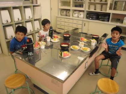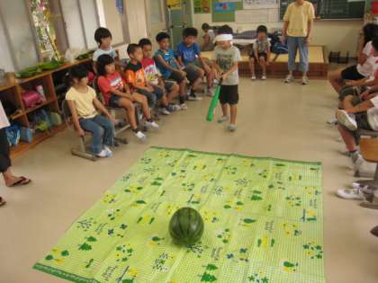 今日、たんぽぽ組が萩山小学校に出かけ、「流しそうめん交流会」に参加しました。流れてくるそうめんをはさむのは難しいですが、結構上手にできました。スイカ割りなどのゲームもあって、とても楽しい交流会となりました。