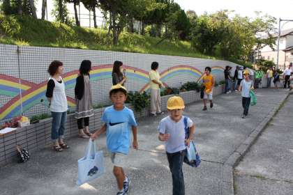 終業式の今日は、朝の登校時に、少年センターの方々、PTA安全部のお母さん方、そして児童会・代表委員会の子どもたちが一緒に朝の「ごあいさつ運動」を行いました。2学期も元気に挨拶ができるといいですね。