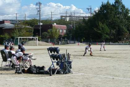10日(日)、野球クラブの大会が行われAチーム、Cチームが出場しました。Aチームは朝日杯に出場、強豪の水野少年野球部に0対6で惜しくも敗れました(写真上・中)。また、Cチームは河村杯に出場、水源パイレーツに健闘しましたが、1対8で敗れました(写真下)。運動会後もずっと練習に取り組み、全力で戦うことができました。