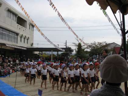 今日は、はちまん幼稚園の運動会でした。どの子も裸足で元気よく演技を見せてくれました。行進や走法もとても立派で感動しました。