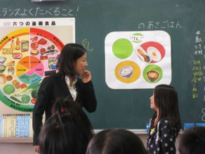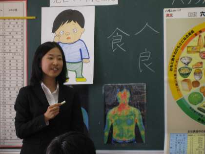 今日は実習生の稲垣先生が4年2組で朝食についての授業を行いました。子どもたちは、朝食について積極的に考え、発表することができました。また、朝食の大切さを知ることもできました。