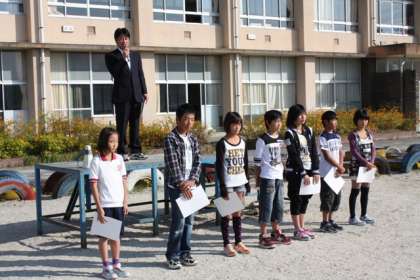 今日18日(月)、後期児童会役員の認証式を行いました。児童会長は新川まやさん(写真左)、児童会役員は森下沙綾さん、松下潤大君、加藤和以君、戸田菜摘さん、中川翔太郎君、新川あさひさんです(写真右)。挨拶運動、後期の児童会行事などを担当します。よろしくお願いします!