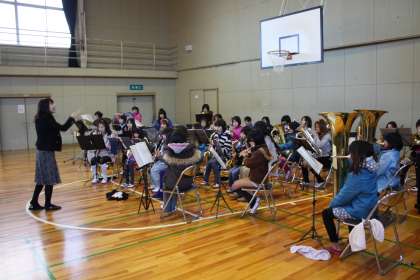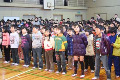 式の最後は、音楽部の演奏で校歌を歌いました。明るく元気な八幡っ子の歌声が体育館いっぱいに広がりました。