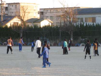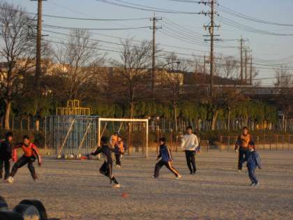 サッカークラブがグランパス・フォー(教頭・小林・半崎・小山先生チーム)と新春対抗戦を行いました。夕方になり寒さが増してきましたが、八幡イレブンの動きはとても俊敏でした。先生チームも声を出し、気合いを入れて頑張りました。