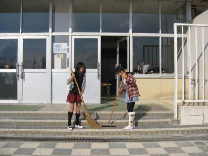 昨日より新年の掃除場所での清掃活動が始まりました。清掃時間の頃は暖かい日ざしになりましたが、冷たい風が吹いています。そんな中でも、子どもたちは班長さんを中心に協力して頑張っています。