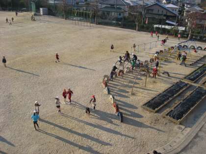 今朝の気温はマイナス3度で、駐車してある自動車の窓ガラスが凍っている中での登校となりました。運動場のあちらこちらで霜が見られるくらいの低温でしたが、登校後の子どもたちは元気に運動場で遊んでいました。