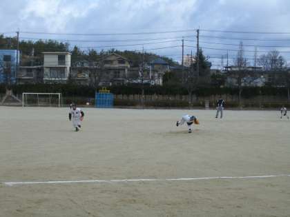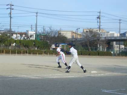 野球クラブBチームも16日(日)に、トラッド長久手と練習試合を行いました。試合開始時は青空でしたが、みるみるうちに空に雪雲が広がってきました。
