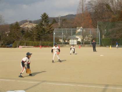 29日の東明小グラウンドは、気温が低いためボールも冷たさを感じるほどでした。Bチームは、初回に先制点そして3回に追加点を加え、4対1で快勝しました。寒さに負けない、あっぱれ八幡球児でした。
