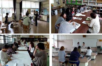 全委員会の終了後、委員さんは厚生部(プレイルーム)、文化部(家庭科室)、安全部(図工室)、広報部(PTA会議室)の4つの部にわかれて、今後の活動計画について話し合われました。(写真 3〜6)