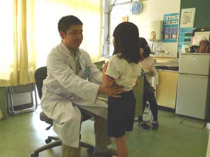 検診を担当する学校医は、「おおたけニコニコクリニック」の大竹Drです。(写真 上)