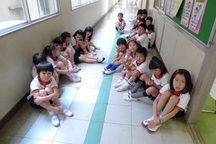 2年1組は,廊下で静かに検診の順番を待っていました。(写真 下)