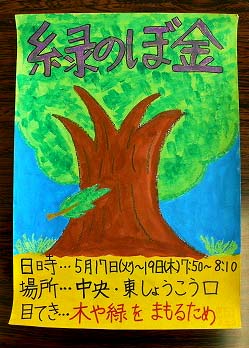 明日(17日)から3日間、「緑の募金運動」が行われます。そのためのポスター(児童作品)が完成しました。