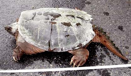 カミツキガメは、あごが強く、危害を与えられたと感じたときかみつく特性があり大変危険な生物です。