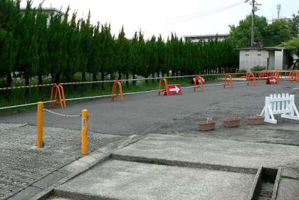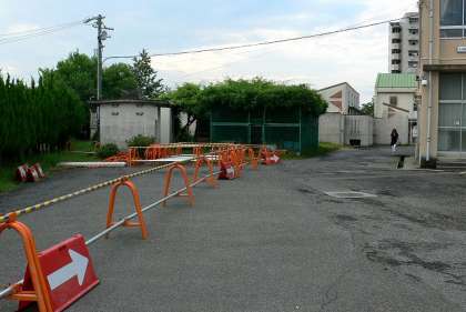 1日(金)の午後、現場事務所建設のための仮囲いが設置されました。自家用車で来校される方はご注意ください。