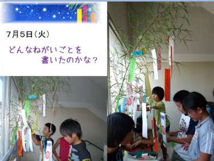ここでは子どもたちが自由に短冊に願い事を書いて飾っています。ちょっと拝見させてもらうと・・・