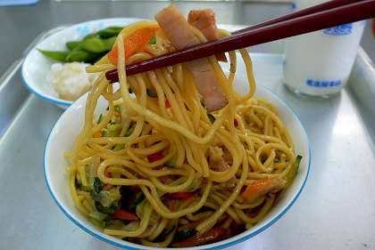 連日の暑さの中、冷やし中華のような酢のきいた「ひんやりメニュー」がうれしいですねぇ。今日は、やきぶた、にんじん、きゅうり、しいたけがたっぷり入って美味しかったですよ!(写真 中)