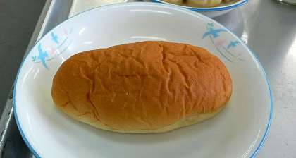 麺類メニューの場合、パンは小型ロールパンが登場することが多いです。(写真 下)
