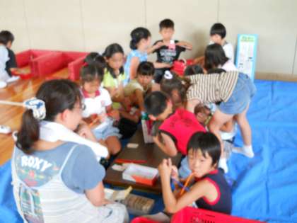 4時半までの約1時間半程度の時間でしたが、迎えにみえたお家の方と楽しそうに子どもたちは帰って行きました。世話をしていただいた、交通児童遊園、地域の協力者の方々、暑い中ありがとうございました。