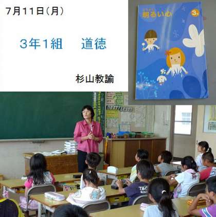 先週の佐藤教諭につづいて、「一人一授業・教師の腕をみがく」の第6弾は11日(月)の3時間目に杉山教諭(3年1組担任)が道徳の授業を公開しました。