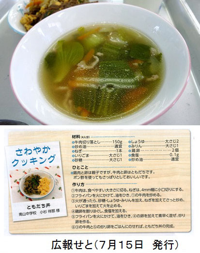 「ともだち丼」は今月の応募献立で、「広報せと」(7月15日号)にもレシピなどが掲載されています。(写真 3)