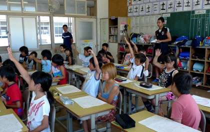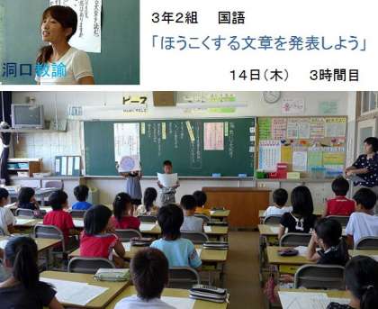 この授業は洞口教諭の初任者研修もかねて行われ、八幡小の職員、指導教員の光昭先生さらには、他校の初任者教員も参観しました。