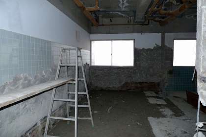 トイレ内部の壁を壊したときのガレキも撤去されて、さっぱりしました。(写真 中)