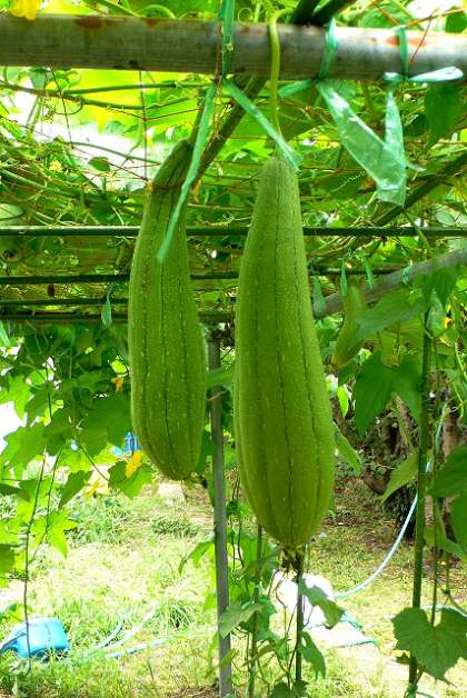 ヘチマ棚の中をのぞくと・・・もうりっぱな実もできていますよ!(写真 下)
