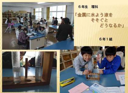 12月14日(水)の2時限目、6年1組が実験中の理科室へおじゃましました。