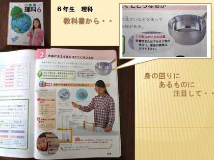 理科の教科書のさし絵や写真にはいろいろな工夫がしてあります。学習内容が子どもたちの生活と結びつくことを願い、導入部分には、興味関心が高まるように身の回りの道具や生活経験を思い出させる内容の写真や文章がたくさん使用されているのです。